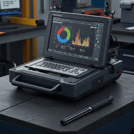 signal analysis or process monitoring, signifying its advanced capabilities. Accompanied by a specialized probe or tool,